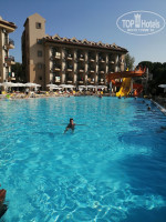 На территории три бассейна, один закрытый (туда мы не ходили), второй для тихого отдыха и третий (где находятся горки) вот там то и проходили все анимации. Аниматоры молодцы, начиная с утра и до самой ночи не давали скучать. Проводили разные игры на море и у бассейна.