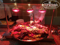 Выбор еды огромный и каждому по вкусу : детям, диетическое, веган, любителям рыбы и морепродуктов! Большой выбор фруктов : финики, дыня, арбуз, яблоки, виноград, инжир, гуава и Манго!!! 👍😉. Есть два аля-карт ресторана : итальянский и рыбный (платно! 33 и 40$!)