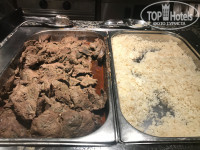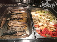 На ужин ассортимент блюд более расширен, всегда мясо, правда тушеное, но с минимумом овощей или без них, форель или дорада на гриле, филе трески в сливках, индейка, курица или шашлыки из курицы, кебабы или кюфте, гарниры, салаты. Морепродуктов нет.
