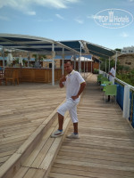 Пляж небольшой, вход в море удобный, можно спускаться в море и с пирса по лесенке. Предложение для отеля- днем на пирсе можно устанавливать лежаки, так как лежаков на пляже не хватает при заполненности отеля, а на третий этаж не всем удобно подниматься. Мы отдыхали и загорали на третьем этаже возле бассейна, оттуда великолепный вид на бухту Наамы и красивейший вид на Красное море. Здесь можно находиться хоть до темноты и любоваться красотами с высоты. Там же есть качели.