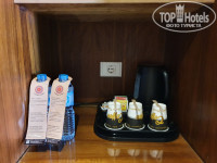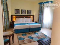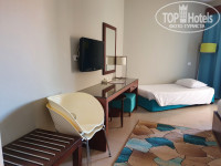 Номер, который нам достался в большом корпусе, оказался семейным. В нем есть большая двуспальная кровать, и вторая одноместная. Так как вторая кровать заняла место, то журнальный столик был спрятан под основной большой стол, а стулья поставили рядом друг на друга. Балкон нашего номера выходил на один из бассейнов. В номере есть ванная, стандартный чайный набор, напольные весы, сейф. Пляжные полотенца тоже в номере. Для их замены нужно позвонить на «0» и вам придут их поменяют. Халаты и тапочки отсутствовали, хотя в других корпусах мы их видели. Через несколько дней у нас сломался холодильник (мини-бар). Позвонили на ресепшен и его тут же поменяли (принесли с соседнего номера). А вот замок в двери так и не починили, хотя мы говорили об этом на гест релейшн и уборщику. Изнутри номер закрыть нельзя было, приходилось на ночь вешать табличку «не беспокоить», после того как к нам в номер утром завалился уборщик, когда мы еще спали.