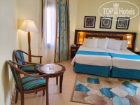 Отдыхали в отеле с 21/11 по 01/12. Прилетели рано. Дорога с аэропорта заняла 10 минут. В отеле были в 7:30 утра. На ресепшене нас сразу отправили на завтрак, даже не надевая браслеты. После завтрака предложили заселиться раньше 14:00 и попросили доплатить за это. Сумма – на наше усмотрение. Стандартные египетские вымогательства. Мы дали 20 долларов. Слышали от других туристов, что суммы все платили разные: кто 5 уе, кто 100 уе. Нас спросили какой номер мы бы хотели, мы попросили номер на этаже повыше. Не любим мы первые этажи. К 10:30 нас посадили в гольф кар и повезли в номер. Номер оказался – бунгало, на 1 этаже. Все «как просили». Номер показался маленьким. Балкона нет. Вместо балкона, столик и стулья на улице.