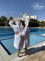 ,могут пользоваться территорией соседнего отеля Albatros Aqua blu 4 , там тоже большой аквапарк и больше бассейнов с подогревом ,поэтому на горках кататься комфортней. Гости пятерки также могут кушать в отеле 4 звёзды и пользоваться всей инфраструктурой.