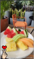 3 вида свежевыжатого сока каждый день, ананасы, папайя, дыня, арбуз, хорошие сыры, зелень, овощи, хумус, ветчина, яйца, сосиски, сладости и другое.