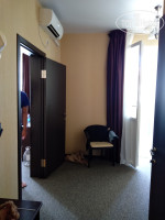 - простые функциональные комнаты. Позже поняла, что расположение весьма хорошее - до ресепшн, столовой, КПП (со стороны ул.Воскресенская) близко, прачечная, магазин в нашем корпусе. Санузел совмещенный: полотенца (большое, среднее и для ног - на человека), фен, зеркало в ванной с подсветкой, полотенцесушитель с подогревом, кусковое мыло в умывальнике и жидкость (гель для душа, он же шампунь) в душе, небольшое мусорное ведро.