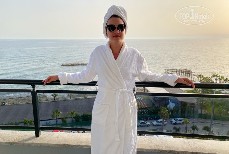А теперь к самому интересному 😏 Заселили нас в номер на 4 этаже, откуда открывался вид на скалу, а справа на море. От устали из-за ночного перелёта, но на радостях от всей располагающей обстановки, нам и в голову не пришло проверить сантехнику и кондиционер. Как оказалось чуть позже, в номере не было горячей воды, а из кондиционера не поступал тёплый воздух (помним, что это апрель и в Турции нет отопления). Обратились на ресепшн, там нас приветливо встретил менеджер по имени Тайфун 😊 Нам было предложено дождаться техника, который будет только в 12 ночи, по всей видимости нужно было заполнить фрион, либо в качестве извинений переехать в номер получше. Так как добирались мы, можно сказать, всю ночь, хотелось уже просто освежиться да лечь спать, поэтому мы выбрали переезд. В виду не стопроцентной наполненности отеля, была возможность предоставить нам номер с шикарным видом на море 😍 Большая благодарность менеджеру Тайфуну за максимально лояльное отношение к гостям отеля 🙏🏼 Засыпали и просыпались мы под шум моря 💙 Если у вас есть такая возможность, приобретайте номер “sea view”, оно того стоит.