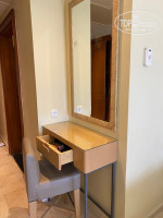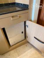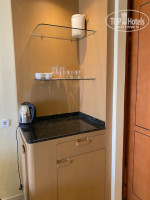Чайник электрический подтекает, но главное он есть. Чайные пакетики, кофе и две бутылочки воды пополняются ежедневно. Минибар выглядит пожеванным избитым доисторическим чудовищем, но работает. Есть сейф, гладильная доска, утюг, фен, телефон.