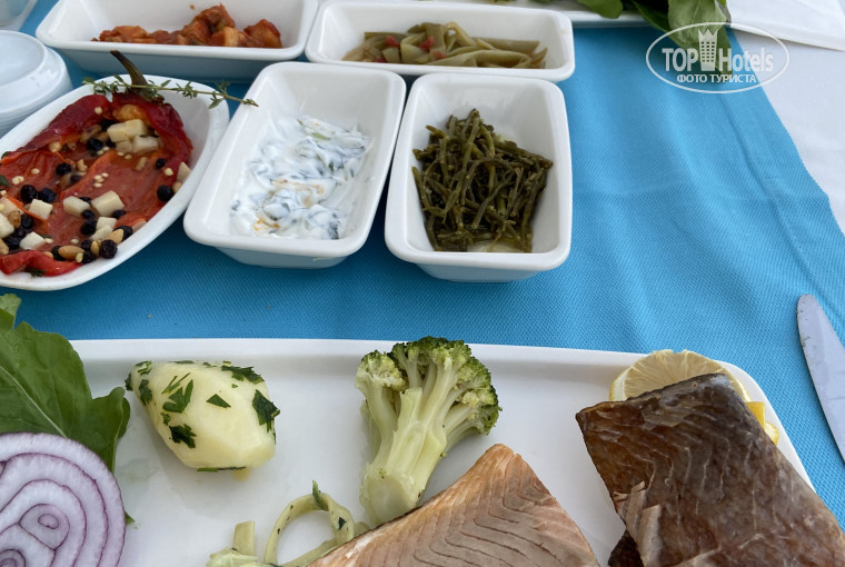 Очень вкусно пекли турецкую пиццу, всегда была двух видов. За неделю единожды были кальмарные колечки и красная рыба на гриле. Вообщем, кормят весьма вкусно и разнообразно. Диетического стола не видели, как и детского баночного питания. Лобби-бар работает 24/7, на нем же есть и сладости. Бар у бассейна работает с 10 до 00:00. Бар на пляже работает с 10 до 18:00, там же вкусные снеки по заказу с 12:30 до 17:00. Кофе-тайм с 17 до 18:00.