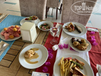 Питание: завтраки весьма стандартны, на завтраки есть апельсиновый фреш. Обеды и ужины особо не отличались. В отеле понравились сладости, всегда было по 5-6 видов порционного мороженного (его давали и возле пляжа, где нарезают фрукты).Кофе из аппарата пить невозможность, неделю пили только турецкий кофе. На обед и ужин 2-3 вида рыбы, несколько видов мяса, много сыров.