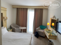 Трансфер до отеля занял ровно 40 минут. Нас первыми завезли и последними забирали. Прибыли в отель в 7 утра. Ушлый сотрудник сказал, что может быть поселит в 9:00, а может в 12:00, а может и в 14:00. Сходили на завтрак, вернулись, был уже новый работник ресепшена и он заселил сразу же. Достался номер 312 - близко к морю с видом на сад.