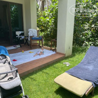 Территория отеля большая, но очень грязная, вроде как видно что сотрудники ухаживают за ней, но как-то коряво. Вместо того чтобы подметать и убирать сухие ветки, траву, листья и цветы они их раздувают , по итогу на дорожках чисто, а на газонах ужас. К растениям подведен капельный полив, но походу он не работает, растюшки все сухие(. На территории тьма ворон, от жары птицы чаще находятся возле бассейнов , естественно там и гадят. Детский бассейн под навесом для ворон просто рай, не жарко и вода. Только за наше пребывание его дважды глобально чистили, тк вода в нем киснет от птичьих фекалий, шезлонги у бассейна также все в Г... А от их какрканья на сончасе спать ребенку не реально. Есть же ультразвуковые отпугиватели, я первый раз вижу отель с таким количеством птиц.
