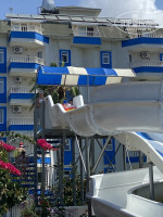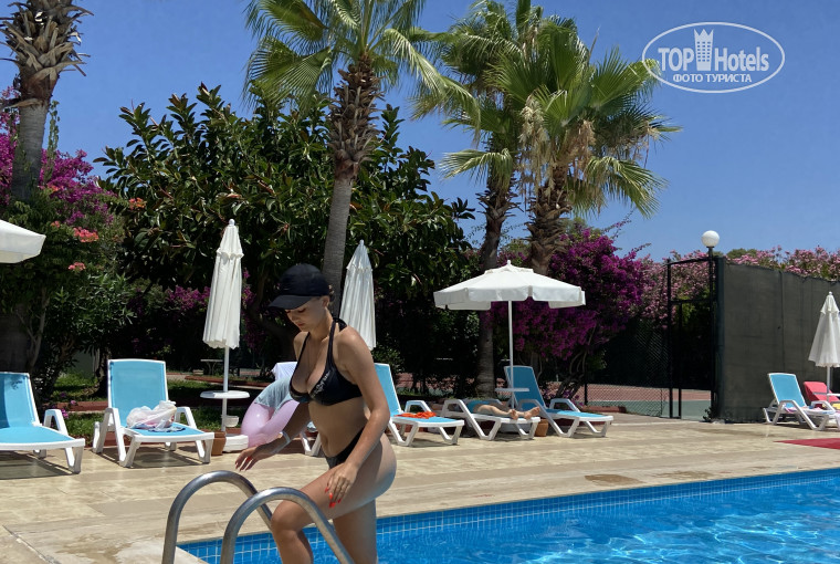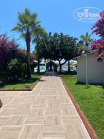 Территория отеля очень большая, очень красивая, ухоженная. Растут деревья с потрясающими цветами, там ещё такие тунельчики из этих деревьев. Газон всегда ухоженный. Пальмы и маленькие и большие по всей территории. Видно что люди следят за этим. На территории есть 3 бара и основная Столовая. Основной бар, где можно посидеть, выпить алко напитки( только если есть 18)разные коктейли, коктейли так же для детей, соки, кофе, чай, отдохнуть, покурить кальян. Так же и есть отдельное оснащённая территория для того, что бы сидеть там и курить кальян. 2 бар у пляжа, так можно ещё и покушать в определенное время. 3 бар где можно посидеть попить чай, сок т все такое там ещё дают печеньки тоже в определённое время. Есть 2 бассейна. В одном 2 горки.