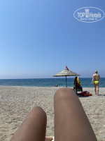 Первая береговая линия, не надо переходить никакие дороги что бы добраться до моря. Море очень чистое, кристальное. Сначала было спокойное, но под конец когда уезжали не много разбушевалось, были очень красивые волны.В море почти проводили все время. Заход постепенный, хороший.