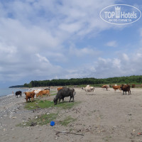 Одним словом ужас!я плакала когда туда приехала!И была в ужасе!отдыхали мы 3 ,я муж и брат!нас везли от аэропорта Сочи 5 часов!с ума можно сойти пока туда доедешь!заселили нас в 129 домик.Домик разделён на 2 номера ,он был полностью наш ,мы попросили на ресепшне.в домике есть 2 кровати ,душ,туалет ,кондиционер,постельное белье!никакого шкафа или полочек нет !вещи положить некуда !посоветую вам взять с собой маленький чайник,мы брали ,очень удобно!полотенце маленькое для лица или для рук(берите с собой 2 полотенца,для тела и для пляжа !)туалетной бумаги тоже нет,но все можно купить в супермаркете на территории отеля!Все необходимое там найдёте!Цены там как у нас в ,,пятерочке,,.Расскажу вам про питание и кафе !Брали мы завтрак ужин !Завтрак шведский стол:омлет,овощи,запеканка,сосиски(самые дешевые из бумаги)каши (не пробовали)на вид они ужасные ,кофе ,чай,сок(юпи) и т.д Завтрак ещё более менее !Но ужин полное г...конечно так нельзя говорить про еду,но по другому это не назовёшь!печенка с гречкой ,картошка ,макароны слипшиеся,плов(в котором у меня лежал длинный чёрный волос чей то 🤮)салат морковь с капустой и прокисший компот!иногда на ужин давали крабовый салат или Оливье ,это ещё более менее вкусно !но если придёте под конец ужина уже все что повкуснее съедят !!!Не берите ужин ,берите только завтрак,еду можно заказать по меню ,мы заказывали по меню ,все вкусно! кафе полная антисанитария:чашки чайные все грязные в налёте и отпечатках от губ!не промытые !Персонал на кухне работает без шапочек и перчаток!Там не только короновирус можно подцепить,а ротовирус ,гепатит и т.д!официанты ничего не убирают со столов ,столы не протирают!В общем ужас 🤬 Они прежде чем этот отель открывать ,первым делом бы насладили питание и чистоту!не далеко от отеля где родник,можно купить фрукты!Теперь про пляж :пляж большой ,шезлонги платно 150р день 😁зонтиков и навесов никаких нет,мы лежали под деревьями !Море почему т не прозрачное ,а какое то мутное,хотя там камни и оно должно быть прозрачным!В целом мы отдохнули хорошо ,сами себя веселили ,ездили на экскурсии и т.д но отель полное Гавно ,не советую его никому!выберите какой нибудь другой но не этот!