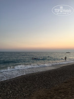 Пляж песок, вдоль моря галька. Заход так себе по камням и через 1,5 метра уже по шею. Море чистое, рыбы приплывают. Бар на пляже работает с 10 до 24, любой коктейль сделают) орешки по запросу).