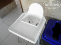 ОТЕЛЬ маленький. Территории практически никакой. Бассейн очень маленький и иногда переполнен. Лежаков у бассейна всем желающим не хватает (фото). Лобби практически нет, оформлен исключительно убого (фото). Лобби переходит в ресторан с баром. Столиков в ресторане всегда всем хватало, но помещение не кондиционировалось. Открытые двери от духоты не спасали, т.к. на улице 35-37 градусов. Пока дохлебаешь теплый суп, семь потов сойдут. Поскольку основные блюда располагались на одной витрине, то возникали очереди. В ресторане и на баре антисанитария. Кто в отеле бармен понять невозможно, функции бармена выполняют все сотрудники. Только что он мыл пол, сейчас он наливает мне пиво. Руки между этими операциями никто не моет. При этом, видимо, особый шик - взять грязными руками бокал не за ножку, а за самый верхний его край. Пейте, если не противно! После обеда собранная грязная посуда складируется на барной стойке и уже потом уносится на мойку. В качестве иллюстрации грязи - детское кресло, стоящее возле мусорного бака и мусором присыпанное (фото).