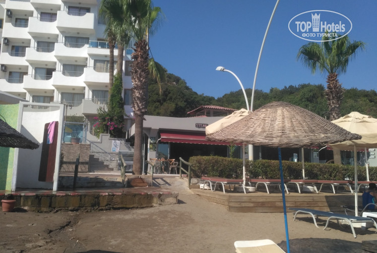 Отдыхала с мужем, в июле 2021 года. На Эгейском побережье впервые так что разница с Анталийским ощутима. Прилетели в Даламан рано утром, через часа 2 были в отеле, как раз к завтраку. Как обычно - одели браслеты, отправили завтракать, и через минут 40 заселили. Хотелось номер с видом на море, но нужно было доплатить, ладно. Номер попался на 2-ом этаже, как раз напротив площади где разворачиваются маршрутки, но дискомфорта не испытывали, шума как такого не слышно было. Номер как номер - небольшой, беленький, чистенький, уютный. Убирали каждый день, полотенца меняли, постель тоже. Единственное что напрягло - так это кондиционер - время работы с 17-00 до 21-00, и с 24-00 до 6-00 - остальное время - ПЛАТНО!!!! Не первый раз в отелях, и уровня разного отели были, но такое я слышала впервые. В жару свыше 35 град. платный кондиционер - это нонсенс. БОЛЬШОЙ МИНУС ОТЕЛЮ!!! В остальном всё было хорошо, питание - очень всё вкусно, разнообразно, как для тройки это просто большой ПЛЮС. По алкоголю ничего не могу сказать - я не пью его. Спрайт, кола, фанта, чай, кофе - для таких как я. Правда в период пандемии нужно было одевать маску когда подходишь к ребятам которые выдают еду и стоять в очереди, но этот прикол не прихоть отеля а сами понимаете почему так - корона... Пляж - да, это то что писали в предыдущих комментариях, пляж маленький, лежаки занимали с утра, в часов 7, но при том что к 12-00 уже жара, и на пляж Вы наверняка будете идти рано то стоит подняться к 7 утра и занять этот лежак.Вот собственно по отелю. Он маленький, номеров до 65 ( я насчитала), уютный, тихий и спокойный. Ведь находиться предпоследним в Ичмелере.