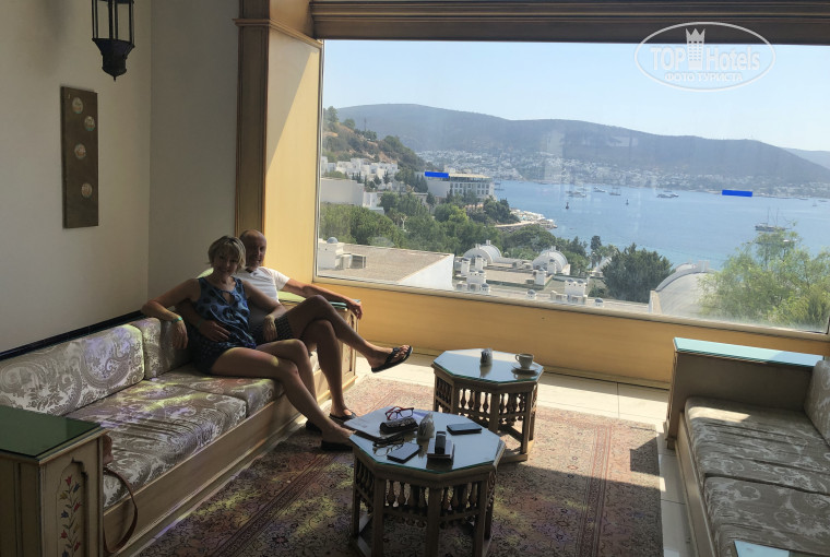 В Бодруме все прекрасно, только вода холодная. Отель отличный, море вкусной еды весь день. На пляже бар и ларек с фруктами и мороженым. Из отеля живописные виды на Бодрум и залив. Можно пойти в город, всего 10 минут до набережной. А можно прекрасно доплыть на катере, который ходит от пляжа соседнего отеля за 15 лир или 2 доллара. Мы ходили в город пешком, а обратно на кораблике. Пляж небольшой, но загорать можно выше, на траве и там удобней. В номере в баре всегда запас воды и газировки. Чайник тоже есть. Телевизор плоский, но русский канал всего один. А флешку не читает. Интернет хорошо работает в номере, ресторане и частично на пляже. Большинство отдыхающих молодые турки с детьми. Вечером многие дамы в вечерних платьях. Часто бывают концерты местных рок групп на площадке рядом с рестораном. В общем прекрасно провели время.
