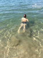 Море находится относительно близко - надо пройти метров 300 по дороге и через территорию отеля "Амброзия". Что очень удивило - всё время есть свободные лежаки, хоть в 8 утра, хоть в 11, хоть под вечер. Море мелкое. Дно мутное и илистое. Даже если вода прозрачная, стоит вам сделать шаг и сразу подымаются комки ила. По пляжу гуляют бездомные собаки. Они не злые, мы не видели, чтоб нападали, но впечатление немного портят.