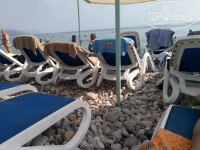 До моря всего 1 минута. Пляжа маленький кусочек. Лежаки новые с сеткой, но стоят очень плотно. Навесы натянуты плохо старые и рваные. Плюс, что утром никто не бежит занимать лежаки, после завтрака спокойно приходили.