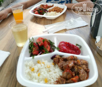 Первое от чего были в шоке - это одноразовая посуда! Но, само питание на удивление хорошее для такого отеля. Завтрак конечно скудный:яйца, мюсли с молоком, брынза, оливки, творог, булочки с разным джемом, овощи. но голодными не оставались. На обед и ужин вкусные запеченные овощи : кабачок, сладкий перец, баклажан. Цветная капуста, стручковая фасоль, бамия ммм) салаты, гарниры из круп или макароны. Мясное что-то одно всегда. Курица в разных видах, индейка, раз была вкусная тушеная говядина, понравились рыбные котлеты. А вот картошка фри всегда плохая. Красное и белое вино из бутылок, фанта, кола, коктейли из сока с виски, пиво. Вино понравилось, мягкое, не кислое. Фрукты на обед и ужин всегда 3-5 видов. Сладости тоже были. Кофе порошковый в автомате.