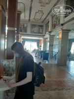 Территория у отеля очень большая, зеленая, ухоженная, много деревьев, тенистых уголков, где можно погулять с коляской. Вечером красивая подсветка зданий. В главном здании - красивый холл с мозаиками на потолке и лепниной. И при всем при этом - нет лифта, хотя в других корпусах есть. Архитектор упустил этот момент. А ведь приходится ходить в этот корпус по несколько раз. Есть пандус сбоку главного здания, а то совсем было бы тяжело с колясками и чемоданами.