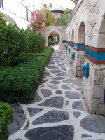 Территория отеля была очень красивая- в греческом стиле. Рядом находилось ещё 3 отеля и ходило водное такси. Водное такси работало с 8-30 до 24 00.