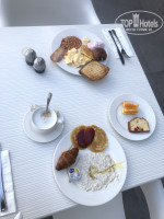 Мы брали завтраки и ужины, а обедали в разных тавернах. Завтраки стандартные – овощи, разные виды колбас/ветчины, сыров, маслины, оливки. Ветчина, яйца в нескольких видах, каша. Очень вкусная свежая выпечка – кексы, круассаны, булочки. Различные хлопья, вккснейшие йогурты, фрукты. Можно сделать тосты/сэндвичи. Отдельно стоит отметить большой выбор растительного молока, такого я еще нигде не видела)) Вкусный кофе!