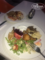 Также таверна рядом с отелем. Здесь мне не очень повезло с блюдом. Взяла нахваленный другими салат с инжиром, но не учла, что он там сушеный, а я не люблю сухофрукты. Им был пропитан весь салат и соус, поэтому, эту таверну мне трудно оценить. В блюде понравился только сыр. У подруги был очень достойный микс из кебабов. Особенно вкусный был из свинины. Я бы взяла его отдельно. На весь ресторан в обед был один официант, который выполнял и роль бармена и справлялся с трудом.