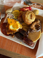 На завтрак были яичницы разного вида, блинчики, фрукты, салат, паста, мясные изделия, рулетики, мини бургеры, финики, сырная тарелка и много много всего еще. На завтрак наедались так сильно, что отсутствие обеда даже не замечалось.