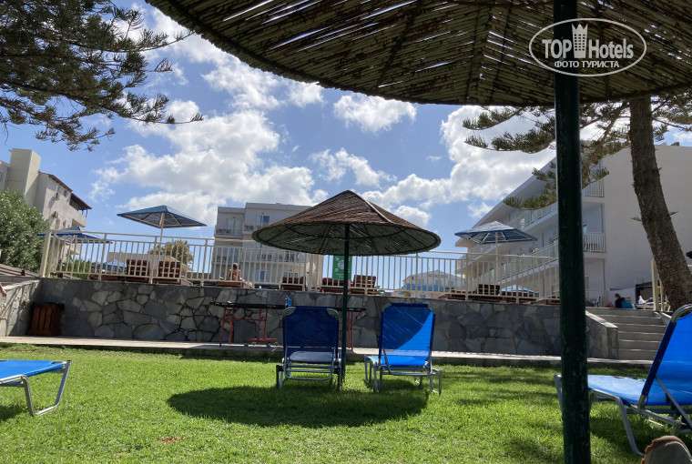 При выборе отеля основным критерием была цена. Отель превзошёл наши ожидания. Мы прилетели ранним рейсом и в отель приехали в 10:30. Нам повесили браслетики и отправили перекусить в бар у бассейна. Вещи разместили в камере хранения(2 евро). Заселили нас в 14:00, номер 225( вид на крыши, но было видно немного моря), улучшенный номер с видом на сад, как и бронировали. Номер тихий. Единственный недостаток—это душ со шторкой, в который сложно поместиться и бесконечно работающая вытяжка.