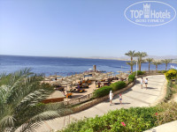 Риф: здесь один из самых красивых в этой локации , он живой и очень разнообразный , если плыть влево от пирса то красивый и живой риф продолжается до пирса в виде моста , который принадлежит саудовскому миллионеру , рядом с ним , его вилла с роскошным садом , доплыв до этого пирса можно подняться на него и передохнуть , глядя на виллу и красивый сад этого миллионера , также видна на территории его серьезная обсерватория , стоящая нехило по разговору отдыхающих на этом пирсе , если плыть вправо от отельного пирса то до понтона отеля Шарм плаза , тоже отличный риф с оригинальными живыми холмами рифами , чем то напоминающий аватар , там очень красиво зависают над ними неподвижно огромные рыбы шпаги( иглы ) синего цвета , я таких крупных до метра длиной не видел ещё , хищные зубастые челюсти если близко подплыть , пугают , название этих рыб Сарган . Также плавал мимо понтона шарм плазы до отеля Континенталь , там уже риф частями мертвый , но зато там видел крупную мурену , также видел наполеонов пару раз недалеко от пирса отеля риф блю бей . Стандартные рыбы здесь все есть в большом количестве это хирурги , аротроны , попугаи различных раскрасок ,спинорог пикассо,скат синеточечный, видел даже радужная вариолу , бабочки , королевский ангел , Посчастливилось увидеть серебопятнистую рыбу белку ,стаи цезий украшали море своими приятно синими телами ,но главное украшение это деловые рыбы с синими полосами на боках ,которые плывут по трое ,пятеро и как бы патрулируют территорию их все зовут тунцами , но название у них синепёрый каранкс .Также присутствуют милые тихоходные с грустными глазами длинношипые рыбы еж , очень они забавные конечно )