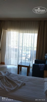 Номер на 3 этаже, огромная кровать и большой балкон, чисто, светло и красиво. Сказали, что это один из лучших номеров, вот только портит это все вид на крышу, где расположены вытяжки с соответствующим запахом и шумом. Мы сразу решили поменять номер. И теперь это 2 этаж с приятным видом на горы. Номер небольшой, уютный, тихий. В номере вместительный шкаф, две кровати, составленные вместе, холодильник с 1 бутылкой воды, телевизор (есть русские каналы), сейф (платный), в ванной комнате фен, всякие нужности-шапочка для душа, ватные палочки, гели, шампуни, крем для тела. Все пополняется каждый день. Номер был не убран, поставили чемоданы и пошли на завтрак и гулять. Убрали номер только после 14 часов и то по нашей просьбе.