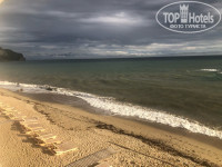 Территория, пляж. Ну, это одно и то же. Просто Великолепно!!! Ради этого и ехали. Живешь, прямо на пляже. Причем песочном. Для Абхазии это редкость и большая. Перед отелем есть добротные деревянные лежаки, бесплатные, для жителей отеля. Но часто гости забывали снимать с них полотенца даже на ночь. Но всем вроде хватало. Есть еще платные Шейки в 3 этажа рядом с отелем. Они тоже пользовались успехом ( про цены сейчас не скажу). Многие отдыхающие лежали просто на полотенцах. Пляж. Песочный, чистый относительно. Вход в море с камнями, при отеле крупные камни, если взять правее, там они мельче, поэтому можно и без коралок. А так лучше в них, конечно. Само море очень чистое, красивое. В разное время суток цвет меняется от лазурного цвета, до сине-черного. После шторма конечно, наплывает всякое. Но быстро уходит. На пляже есть аренда байдарок и сапов. На банане катают тоже. Напротив отеля в метрах 200 есть небольшой риф коралловый, там люди в масках плавали постоянно, если нет волн. По пляжу постоянно ходят продавцы с морепродуктами, фруктами, брали пару раз – дорого, но вкусно, понравилось, не отравились тьфу-тьфу. Народу в сентябре немного, на пляже рядом с отелем вообще только посетители. Далее к Пицунде уже плотнее по количеству.