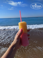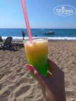 Бар на пляже работает с 10. уже в 9.50 там очередь людей на 20-30. дают воду,сок,колу, замороженый сок и минимальный турецкий алкоголь.все. с 12 вроде уже есть что перекусить, картошка фри, курица и те же нарезаные овощи.