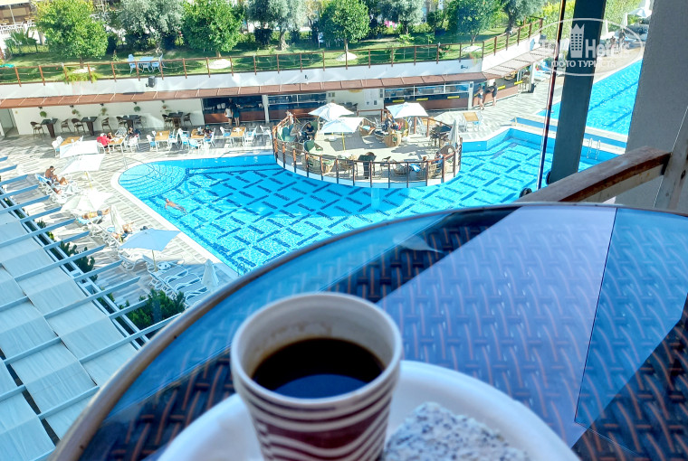 Скажу честно,ожидала худшего.В реальности сам отель,здание,холл,ресторан ,территория производят хорошее впечатление.При заселении не было русскоговорящих,прилетели мы рано,сходили на завтрак,около 12 заселили всех.Я просила этаж повыше,пошли навстречу.Жила я одна.Номер просторный,с балконом,2 кровати и диванчик.Есть чайник и чай,кофе.Сейф и вай фай платные.
