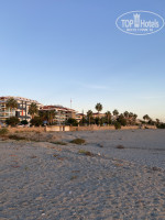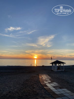 6. Пляж - крупная галька, желательно наличие обуви. Есть узкий заход в море от отеля, или справа более широкий заход от городского пляжа, а так крупные камни при заходе в море.