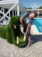 Территория: Огромнейшая, красивая, вся в цветах, очень ухоженная, статуях, есть гамаки, беседки, амфитеатр где проходит анимация и днем просмотр фильмов или мультиков на большом экране.