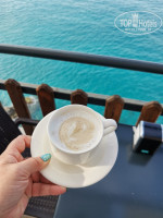 Обедали не в ресторане , а в бистро на пляже . Бургеры два вида пиццы , маргарита и мясная с оливками, салат и паста . Всё вкусно . Есть соки , воды , кофе , чай . Из алкоголя пиво , вино .
