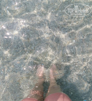 Пляж хороший . Когда не хватало лежаков, то подвозили новые . Людей не с нашего отеля , отправляли на свой пляж . Море прозрачное , ласковое. Над лежаками натянуты тэны. Очень удобно , лучше чем под зонтиками . На пляж , ходили сразу после завтрака. Проблем с лежаками не было. Но вот ступеньки, это конечно не каждый сможет осилить . Но мы про них знали , не ожиданностью не стало . Но те кто бронировал другие отели , а их привозили в этот из-за не хватке мест , те были не готовы к таким спускам и подъёмам.