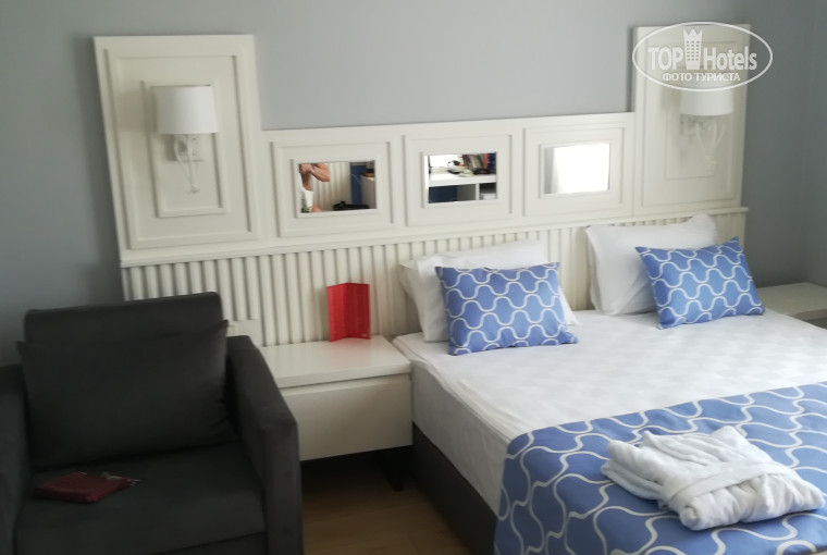 Отдыхала в июне с 19 по 26,ночью 27 уехали. Отель выбирала с большой территорией. Заселение в 14 часов, но при приезде одели браслетик и ты уже можешь всем пользоваться. Сначала заселили в бунгало на 3 этаж в комнатку с малюсеньким балкончиком, выходящим на оживленную дорогу. Но менеджер Алия (огромное ей спасибо) помогла и нас переселили в номер 3709 с шикарным видом, но... балкона нет, вещи сушить негде, вода в душе текла до самого порога. Сушилку принесли, без балкона жить вполне можно, а вот в душевой так ничего и не сделали — давали больше полотенец на пол. Это единственный минус.
