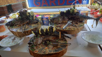 На пляже есть кафешка. Там можно взять воду, пиво, чай, соки и газировку. Они подают ланч. На ланч можно заказать пиццу, салат, гамбургеры и пасту. В отзывах все хвалили бургеры, но мне понравилась только паста. Обычно очень сложно сесть за столик, приходится ждать пока что-нибудь освободится. Мне не понравилась кухня, поэтому я там больше есть не планирую.