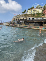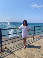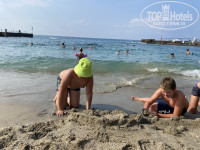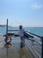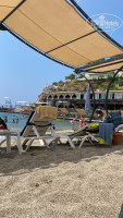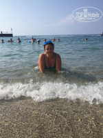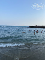 Пляж отличный- навесы, много лежаков, места всегда есть, но находятся те, кто занимает с ночи лежаки в первом ряду. Места всем хватает. Занимать в 6 утра лежаки не нужно. Единственно постояльцы соседнего отеля частенько занимают места на пляже сензы, их периодически выгоняют. На пляже относительно чисто, несколько раз за день ходят собирать мусор с мешком. Пляж песчано- галечный, вход в море удобный, у берега мелко, с детьми удобно. Учитывая заводь нет очень больших волн- всегда можно поплавать. В 100 м от пляжа центр водных развлечений- катают на банане, плюшке, парашуте над морем- на парашуте на 2 человека стоит 80 евро, одному -50 евро.