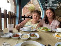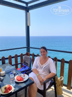 Ресторан- есть основной- очень хороший, но надо приходить к открытию, чтобы занять места с видом на море, некоторые забегают в ресторан и расталкивают всех, чтобы удачно расположиться, и это просто ужасно. Все равно мы старались приходить к открытию, потому что чуть позже свободных столов может и не быть. Ассортимент в столовой хороший- мясные блюда из баранины, говядины, курицы, индейки, рыба- скумбрия, сибас. Много овощей, зелени. На завтрак - яичница, омлет, блинчики- все без очереди. На обед и ужин- барбекю, пицца, лепешки с сыром. За 2 недели один раз была Турецкая ночь- пир горой. Из напитков- кофе в кофемашине ( капучино, американо), чай, напитки из автомата, газированные напитки, из спиртного- пиво, вино белое и красное, раки.