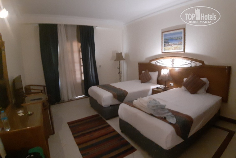 Заселили раньше 14.00. Номера старые, но все что нужно в рабочем состоянии. Кондиционер, холодильник работают. Сейф в шкафу бесплатный. Горячей воды в нашем понимании нет, скорее летний теплый душ. Матрас высокий, в меру жесткий. Белье сильно застиранное, до катушек. Если вы не любитель гулять до поздней ночи, планируете экскурсии, или отдыхаете с детьми, не заселяйтесь в номера рядом с анимацией, очень громкая музыка.