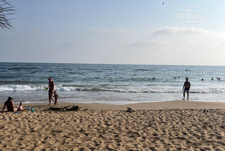+ отличный пляж, песок. Много свободных лежаков, красивый ресторан у пляжа.