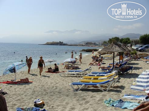 Пляж: здесь у отеля явные проблемы - напротив отеля (свой) пляжа можно сказать нет, чуть правее в сторону города очень неплохая бухточка, но лежаки по 4,5Евро!!!! Так, что покупайте зонтики, подстилки - вход в море отличный, волнения практически нет, даже когда везде вокруг уже хорошие волны. Можно сходить (20минут) налево на мыс, там можно поплавать с пирса, чистая спокойная вода, но камни. ***В Элунде пляжи просто супер, но дорога ... один серпантин!