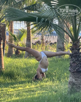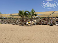 Пляж. Это - просто рай! Ходит от отеля шаттл (маршрутка №1), по заявлению каждые 15 минут, но это не так. Примерно каждые 30 минут. Ехать минут 5-10, можно и прогуляться вдоль базара и отелей, тоже не так далеко. Но есть отрезок пути вдоль мусорок других отелей, надо пробегать). Красивое кафе на пляже с приличным туалетом. Есть диваны, кресла удобные и столики. Готовят вкусно и главное подают красиво. Посуда современная, если вы едите и пьете в кафе-вам подадут в стекле, если на пляже, в пластик. Есть выбор не плохой. Салаты очень вкусный Цезарь, и с море продуктами. Пиццы различные и вкусные. Паста сносная. Фрукты. Напитки. Ребята все немного понимают русский язык, только делают вид, что не понимают))) но чаевые и приветливое общение – делают своё дело! Шеф кафе Баттал, вообще мировой парень, обслуживает быстро и порекомендует что выбрать. Бармен Карим и Шакир – молодцы, просто не жмитесь на чаевые и ребята вас всегда поймут! Аля-карт ужин проходит вечером в этом кафе, всё красиво и вкусно. Нам предложили стейк и рыбный, ходили на стейк. Всё супер-готовят прекрасно! Шеф-повару РЕСПЕКТ! Затем идет зеленная зона с газоном и пальмами, среди которых расположены шезлонги и гамаки, рядом душ и передевалка. Деревянные бунгало с матрасом и балдахином + отдельные лежаки, можно там балдеть за 100 евро в день!!!! За что такой ценник-не понятно и дорого! Песок мелкий и читсый, лежаки со столиками и горшком под мусор. Тенты хорошие. Заход в море пологий, море чистое. Но дорожку до воды могли бы как то поливать или положить коврики. Песок горячий.