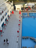 В заключении общее об отеле- территория небольшая, вся на виду: бассейн, горки, бар у бассейна ( там кстати тоже можно полноценно пообедать), сцена. Есть спа-центр ( не пользовались), небольшой фитнес-зал. Недалеко от отеля Мигрос, рынок, магазинчики. На пляж возит автобус с 8 утра. Ехать минут 5. Ждали тоже не более 5 мин. Он курсирует туда-обратно целый день, удобно.