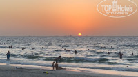 Пляж отеля огромный, через дорогу по пешеходному переходу минут пять максимум! Лежаков огромное количество, не понятно зачем люди приходят и занимают лежаки утром?! Полотенце дают при входе на пляж, тут же и сдаешь уходя, что очень удобно!Вход в море пологий, очень комфортный! Песочек мягкий, белый! Волны есть , но не большие! Если у кого все включено , то на пляже есть бар, можно попить кофе, взять воду!